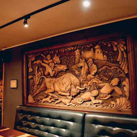 Здесь много света и пространства, много дерева и охотничьих трофеев. У каждого зала — своя основная тема, так что можно выбрать тот, что ближе по духу. Кстати, кроме вкусной и сытной еды, здесь позаботились и о пище для души: каждый день после 20:00 в «Раковском Броваре» выступают музыканты.