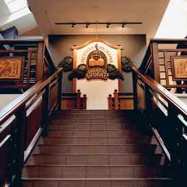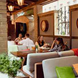 На первом уровне — Пивной, Охотничий и Спортивный залы, на втором еще четыре: Белорусский и Венский, Балкон и Медвежий. Кроме этого, в теплое время года можно расположиться на летней террасе во дворике или наверху.